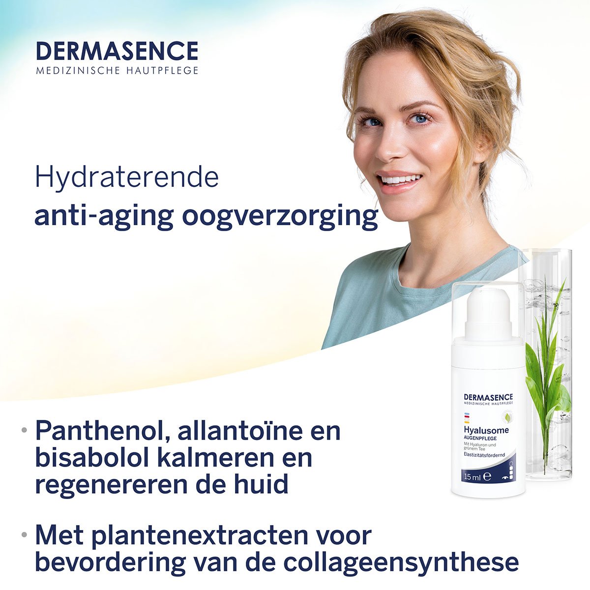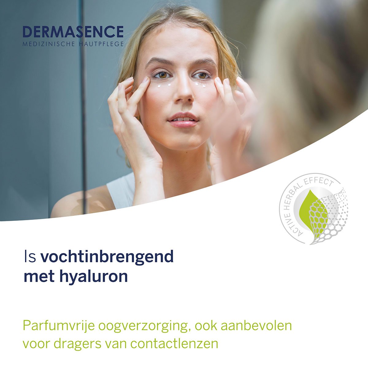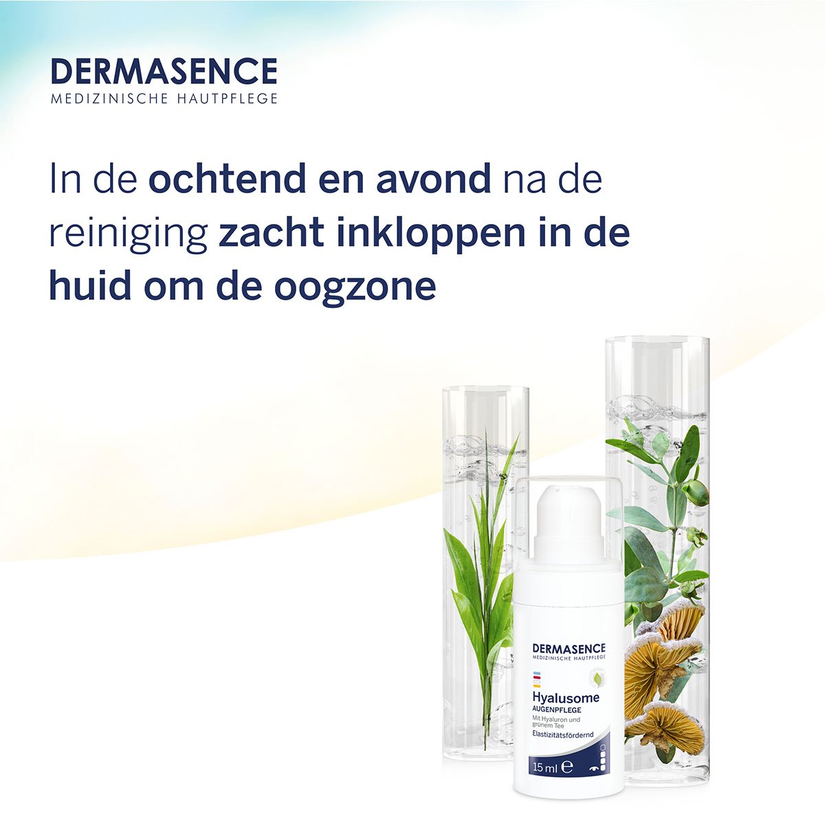 Klop de DERMASENCE Hyalusome oogverzorging ‘s ochtends en ‘s avonds na de reiniging zachtjes in de huid rondom de oogzone.